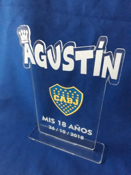 Souvenir y trofeo en acrilico, ideal para cumpleaños 15, 18, 30 o torneos, con una medida de 10 cm aprox, cortado y grabado a laser, con opción de personalizado sin cargo.